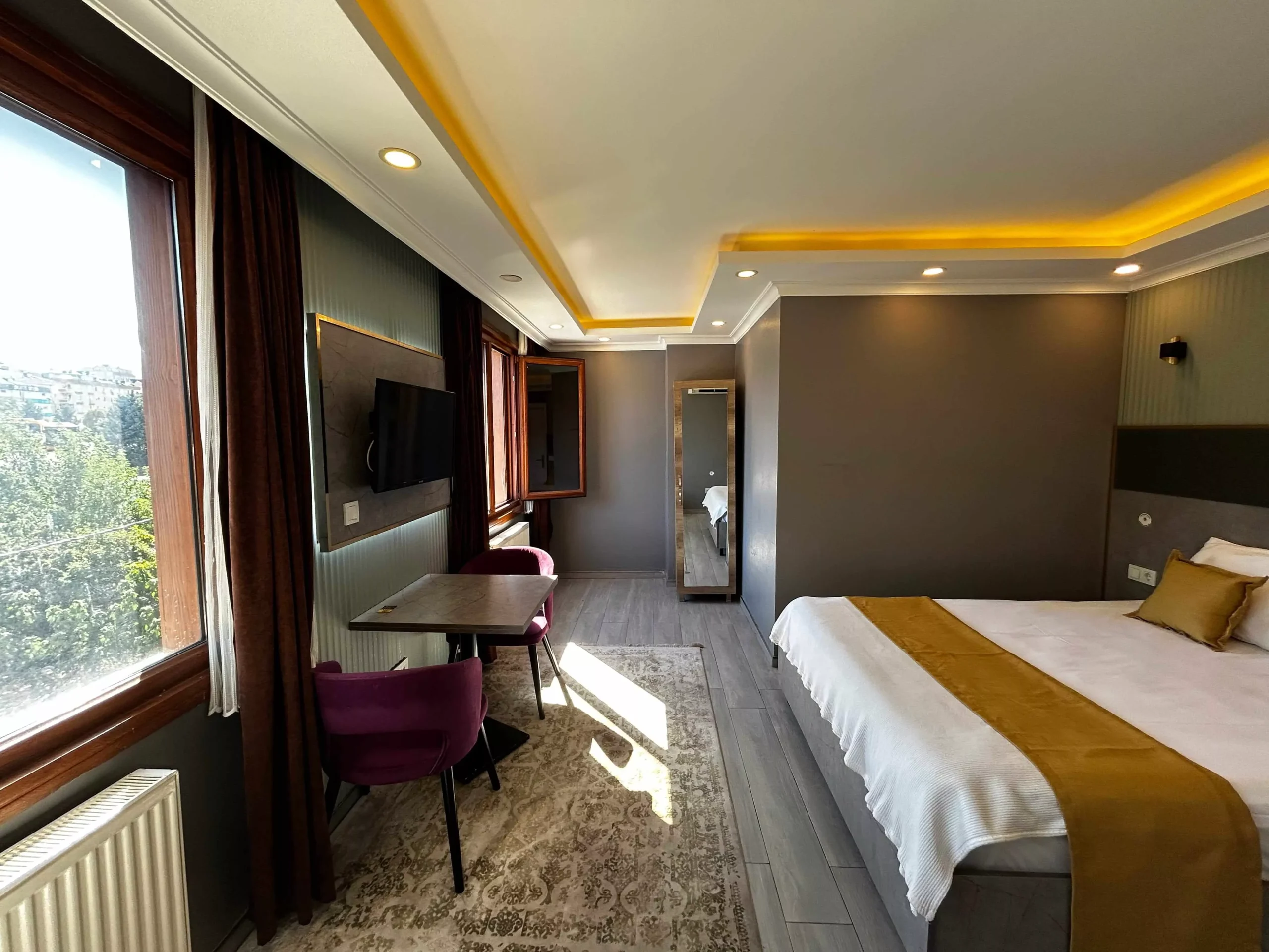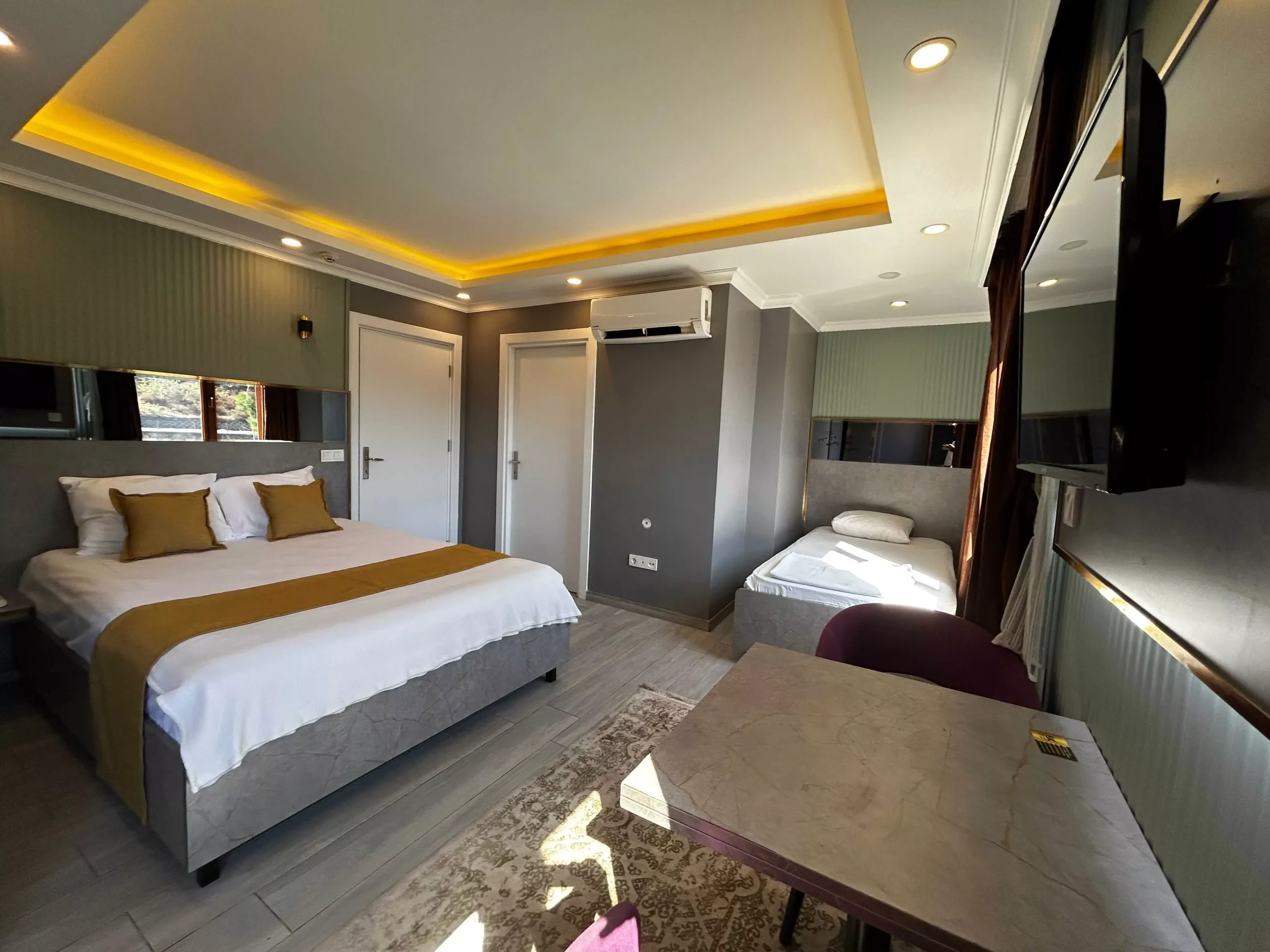 Odamızda ücretsiz Wi-Fi, klima, Smart TV, 7/24 sıcak su ve konforlu yataklar bulunmaktadır. Hijyenik ve düzenli olarak temizlenen odamız, güvenli ve huzurlu bir konaklama ortamı sunar. Ayrıca ücretsiz otopark imkanı ile araçlı misafirlerimiz için büyük kolaylık sağlar.